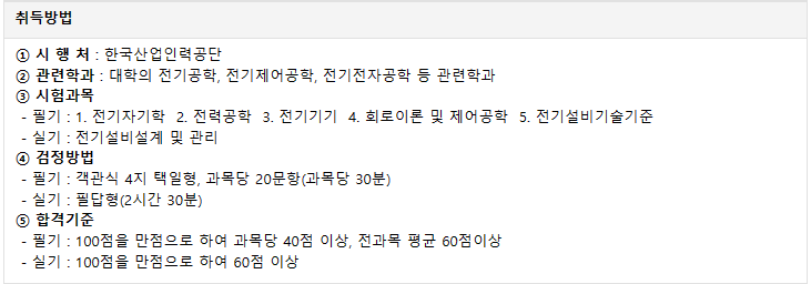 | 국가기술 자격증_전기산업기사 수험정보 (0) | 2024.05.06 |